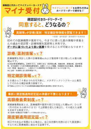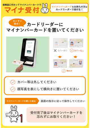窓口で受付後、マイナ保険証をお持ちの方は、窓口設置のカードリーダーを利用して、 保険の資格確認が行えます。