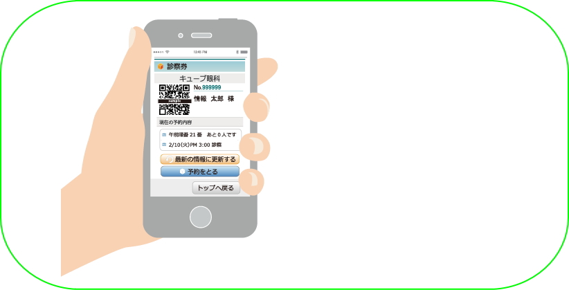 電子診察券(QRコード)は、スマホで診察券情報を表示でき、診察券を持ち歩く必要がなくなります。